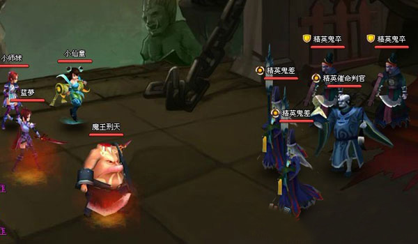打法:开场孟婆晕中路BOSS和小怪,下路尽快打掉两个“精英炼狱魔骨”,之后集中火力打中路,在BOSS出第二次绝技前要消灭掉它。然后就比较简单了,最后只要剩一个4W血以上的伙伴就能清掉残余小怪。