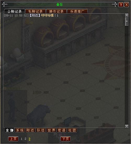 备忘日志—公聊记录,记录了聊天所有频道的历史信息。可以进行翻页浏览。